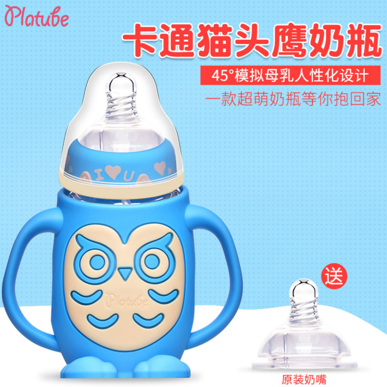 【品名】卡通貓頭鷹奶瓶 【包裝】高檔禮盒單個包裝