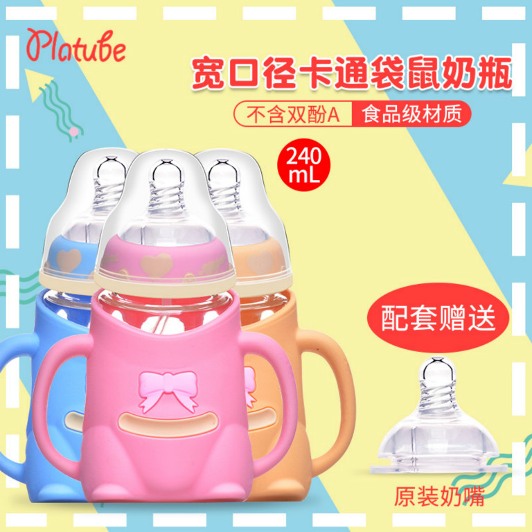 3、瓶身高硼硅晶鉆玻璃材質,安全耐高溫600℃正負溫差200℃;不含雙酚A、BPA;寬口44MM口徑易倒奶粉易清洗;環(huán)保油墨貼花刻度安全衛(wèi)生更具設計空間感。