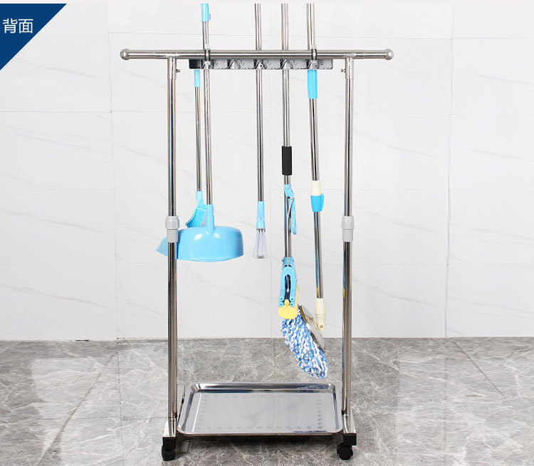 16掛不銹鋼可移動拖把架落地式掛架掃把墩布置物架011