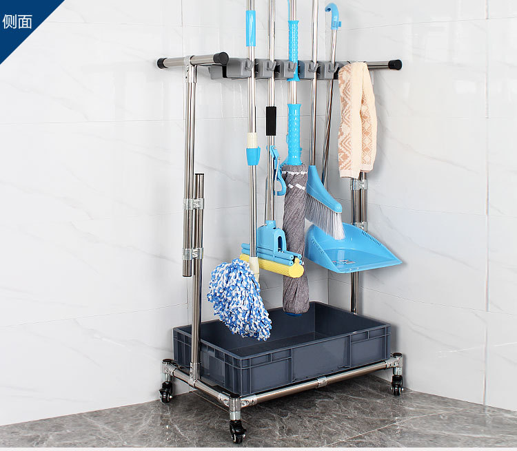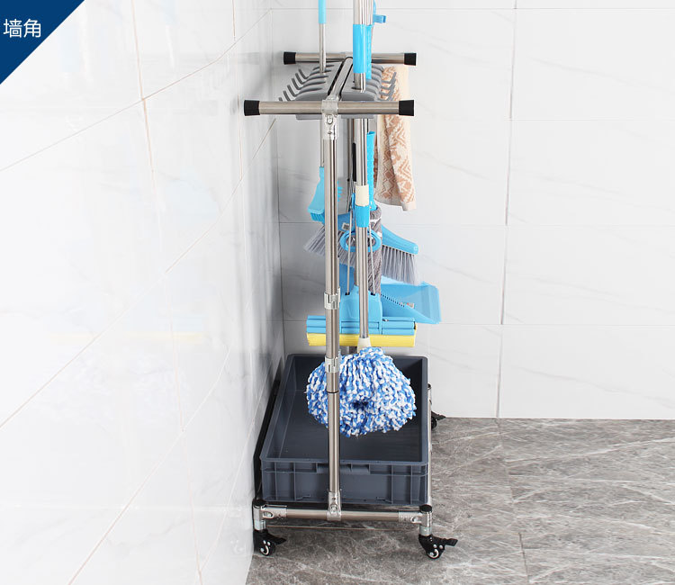 16掛不銹鋼可移動(dòng)拖把架落地式掛架掃把墩布置物架011