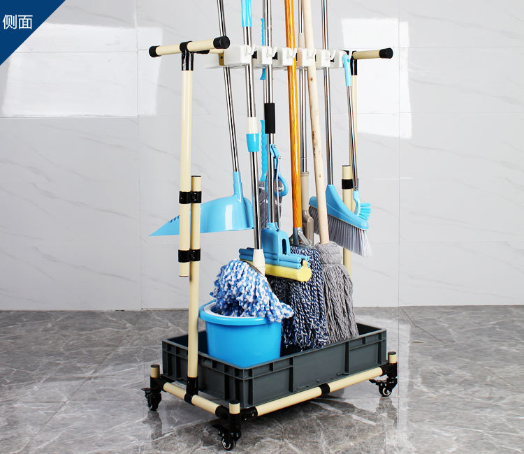 011可移動(dòng)落地拖把架米黃色16掛20鉤掛架子墩布架收納架