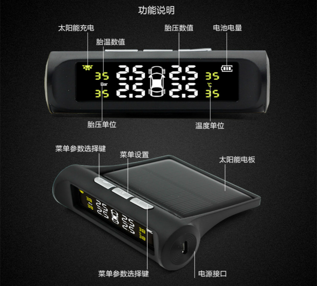 016太陽能無線胎壓監(jiān)測系統(tǒng)TPMS監(jiān)測器傳感器監(jiān)測儀外置