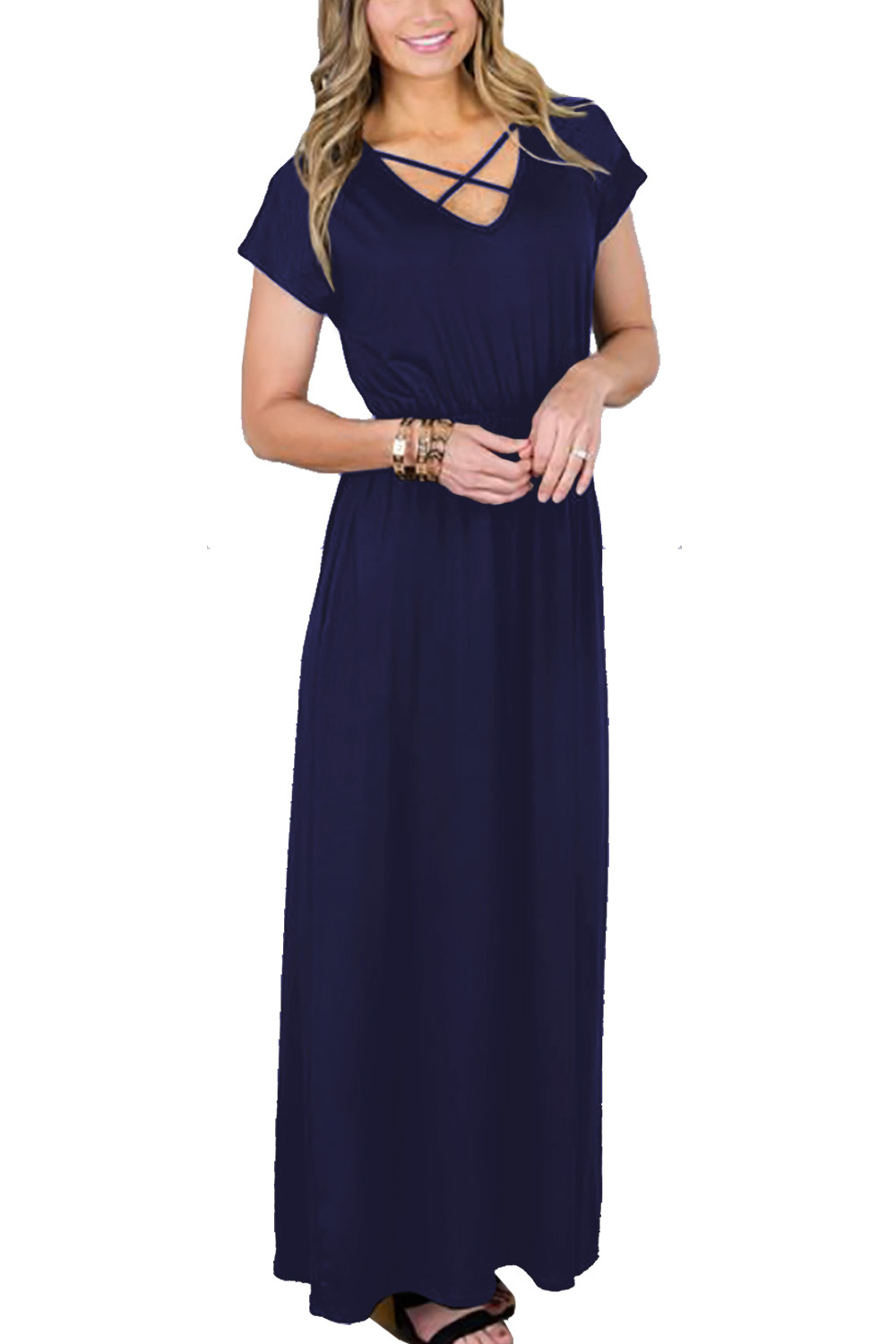 亞馬遜爆款女裝 歐美印花連衣裙 印花大擺長(zhǎng)裙 有口袋 腰帶