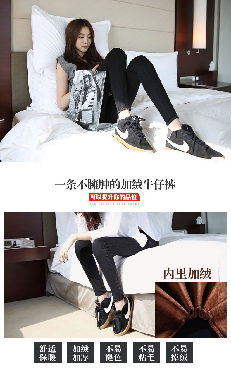 加絨牛仔褲女2017秋冬新款高腰小腳褲韓版緊身加厚黑色顯瘦九